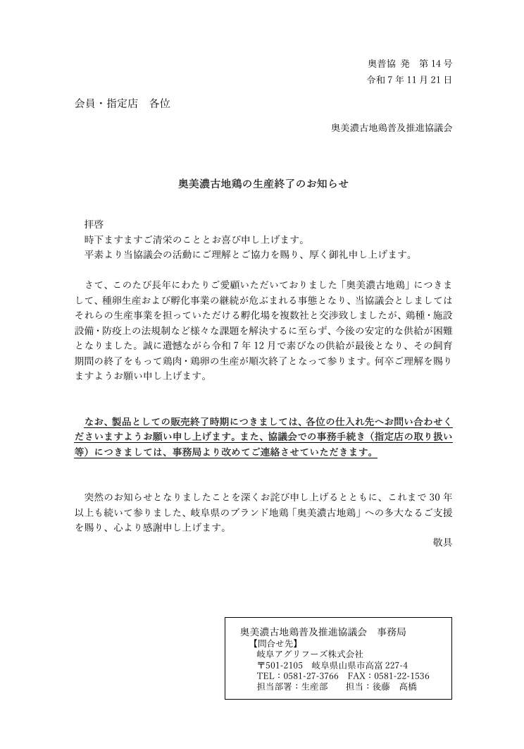 奥美濃古地鶏普及推進協議会